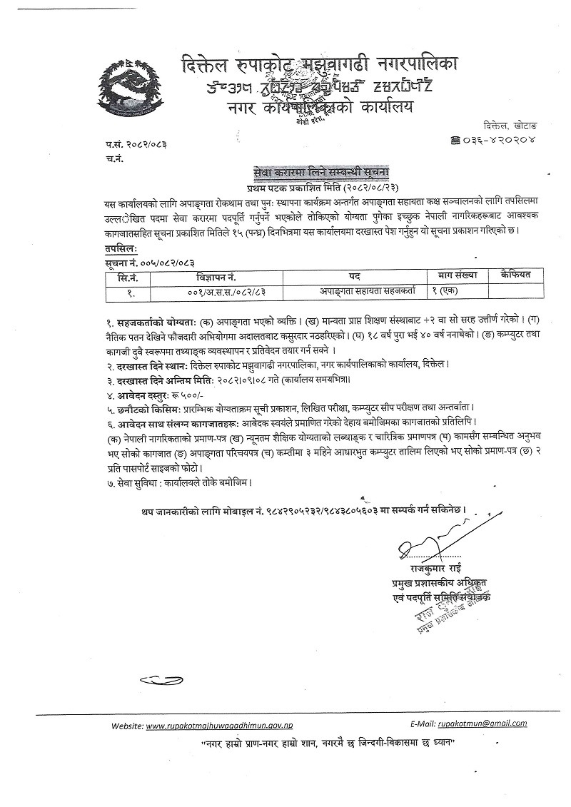 सेवा करारमा लिने सम्बन्धी सूचना । (सूचना प्रकाशित मिति २०८२।०८।२३ गते )