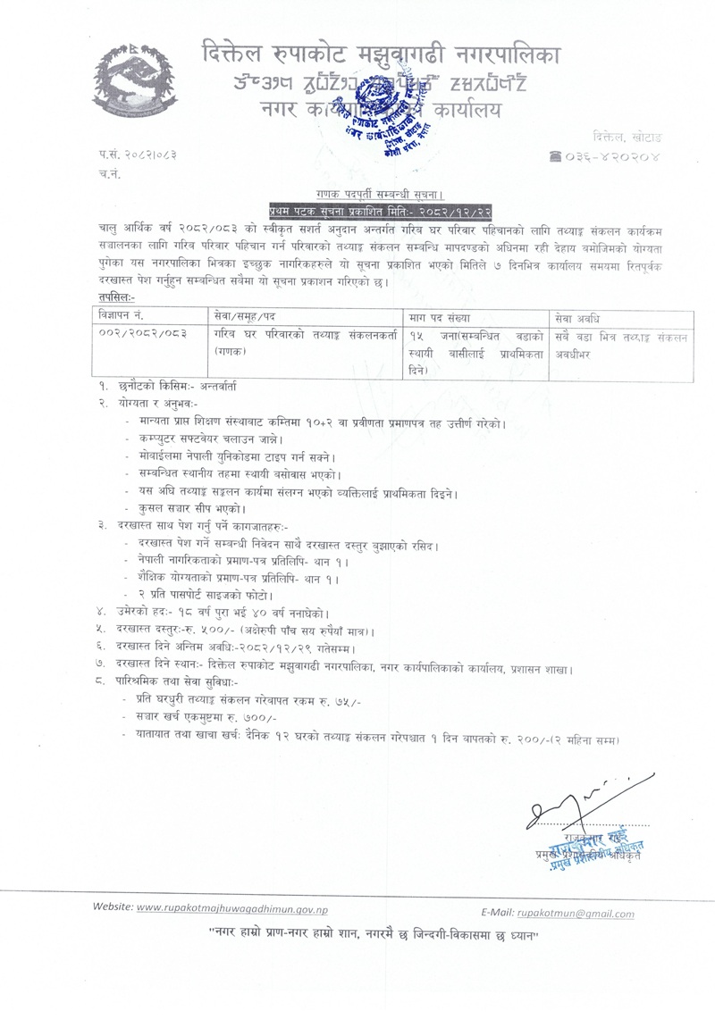 » गणक पदपूर्ती सम्बन्धी सूचना।(प्रथम पटक प्रकाशित मितिः २०८२।१२।२२)