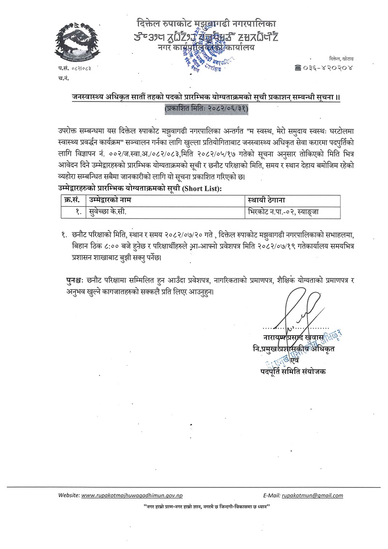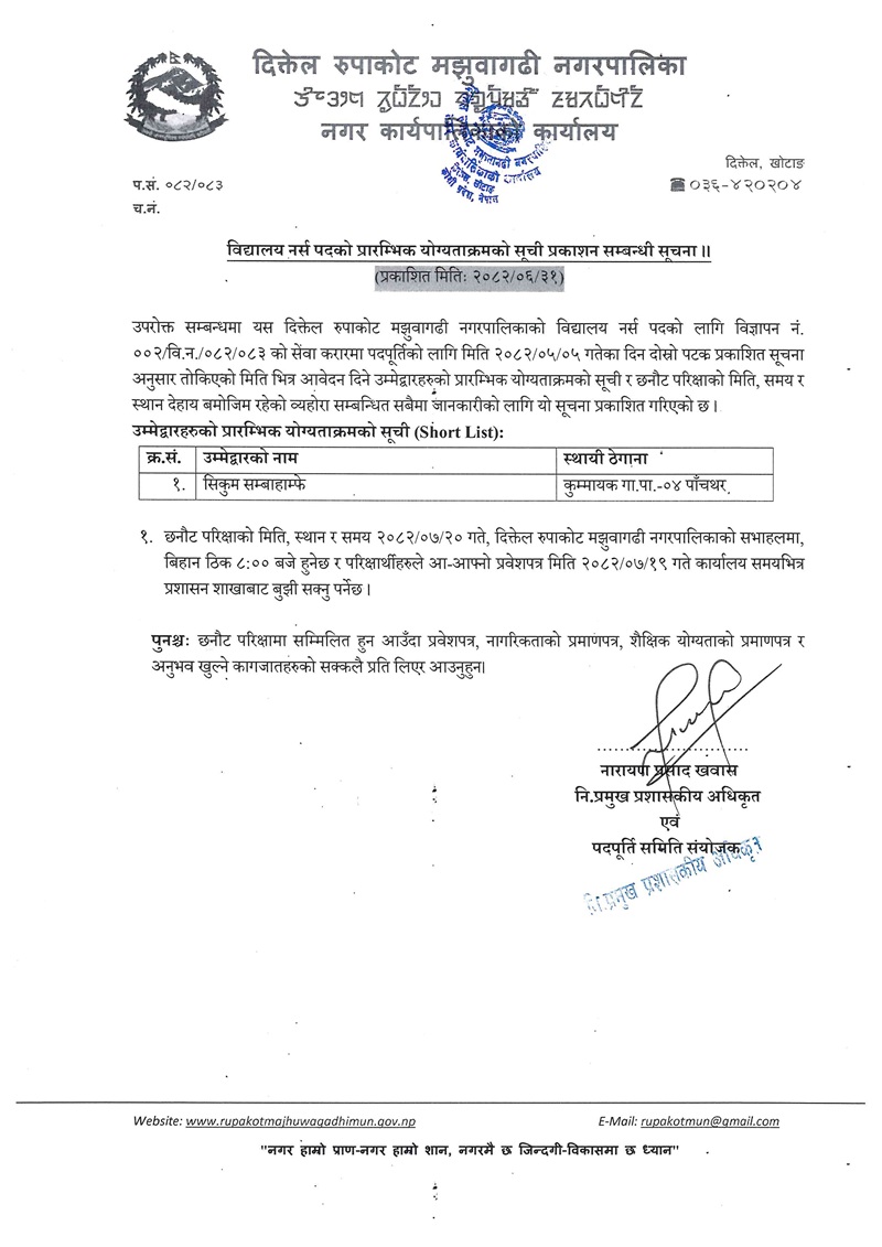 ई-मेल : rupakotmun@gmail.com; info@rupakotmajhuwagadhimun.gov.np