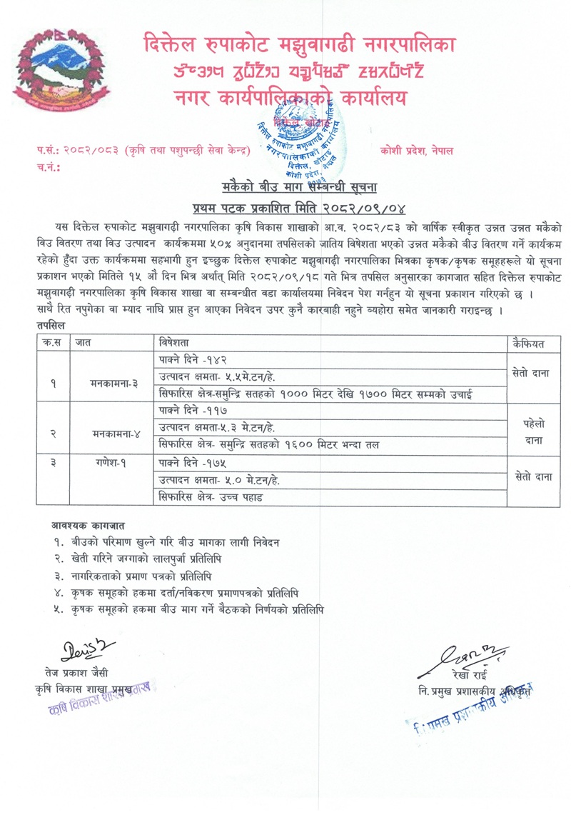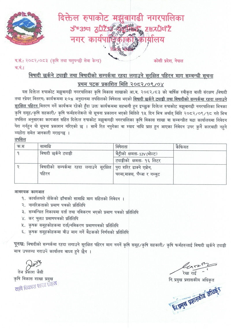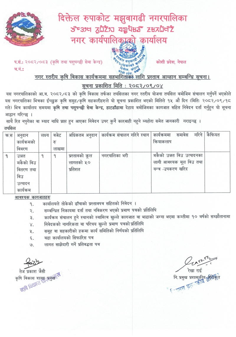 नगरस्तरीय कृषि विकास कार्यक्रममा सहभागिता सम्बन्धमा।