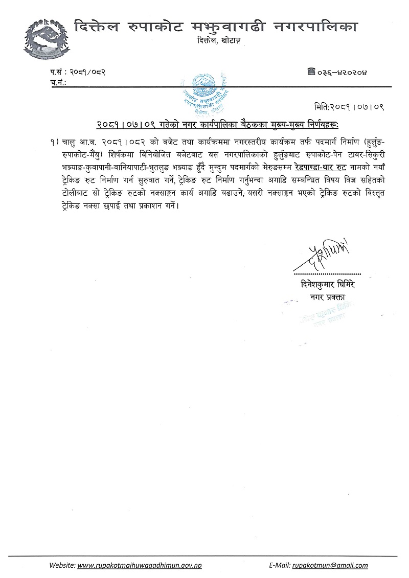 २०८१।०७।०९ गतेको नगर कार्यपालिका बैठकका मुख्य-मुख्य निर्णयहरू।