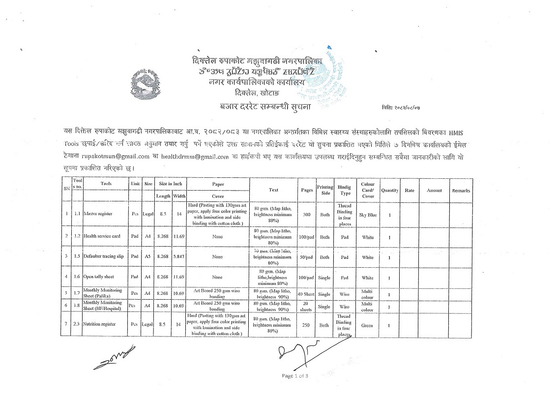 बजार दररेट सम्बन्धी सूचना । (प्रकाशित मिति २०८२।०८।०७ गते)
