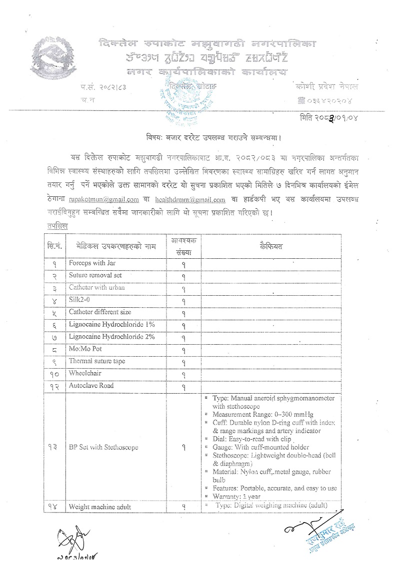 ई-मेल : rupakotmun@gmail.com; info@rupakotmajhuwagadhimun.gov.np