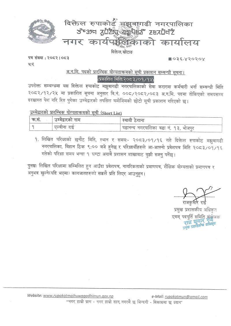 अ.न.मि. पदको प्रारम्भिक योग्यताक्रमको सूची प्रकाशन सम्बन्धी सूचना। (प्रकाशित मितिः २०८३/०१/१४)