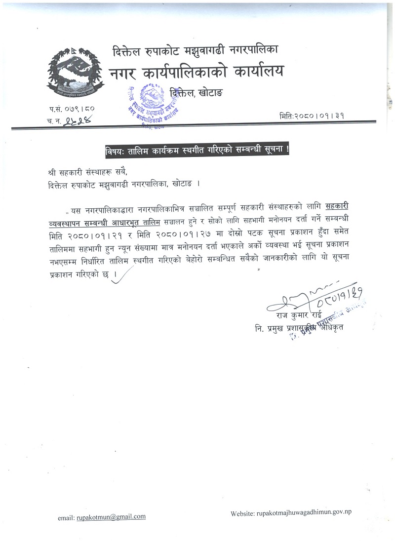 तालिम कार्यक्रम स्थगीत गरिएको सम्बन्धी सूचना।(श्री सहकारी संस्थाहरू सबै)