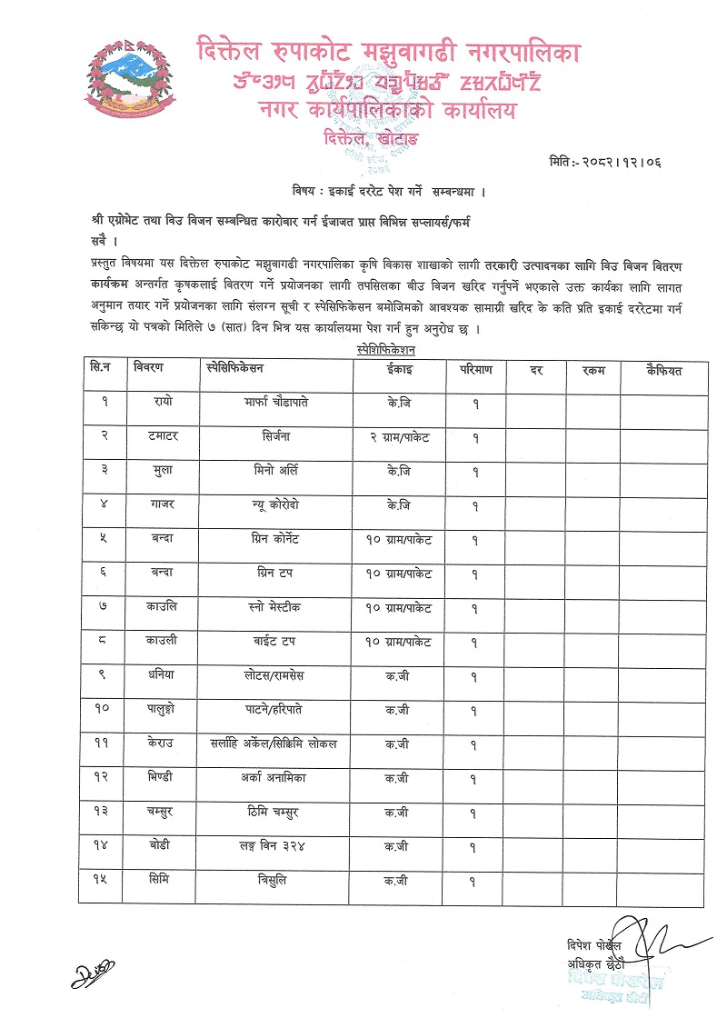 इकाई दररेट पेश गर्ने सम्बन्धि सूचना । (सूचना प्रकाशित मिति २०८२।१२।०६ गते)