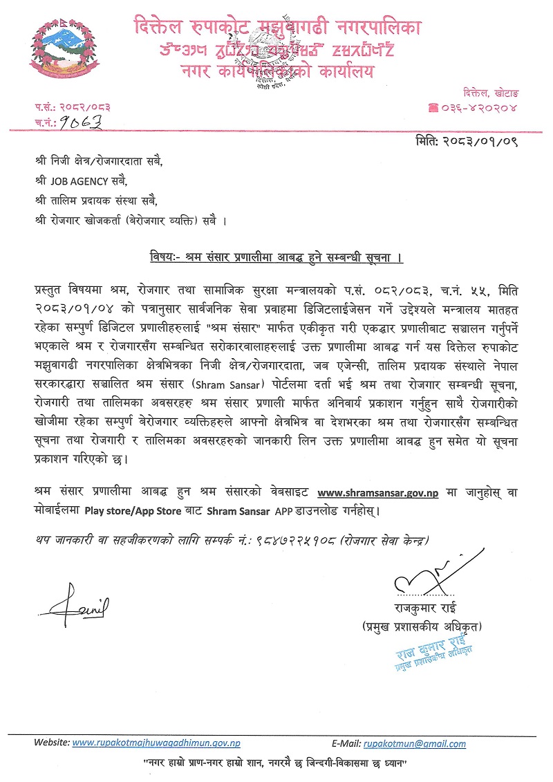 श्रम संसार प्रणालीमा आबद्ध हुने सम्बन्धी सूचना । (प्रकाशित मिति २०८३०१।०९ गते)