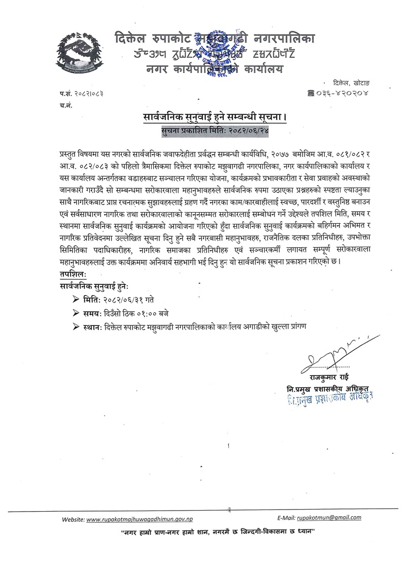 सार्वजनिक सुनुवाई हुने सम्बन्धी सूचना। (सूचना प्रकाशित मितिः २०८२।०६।२४)
